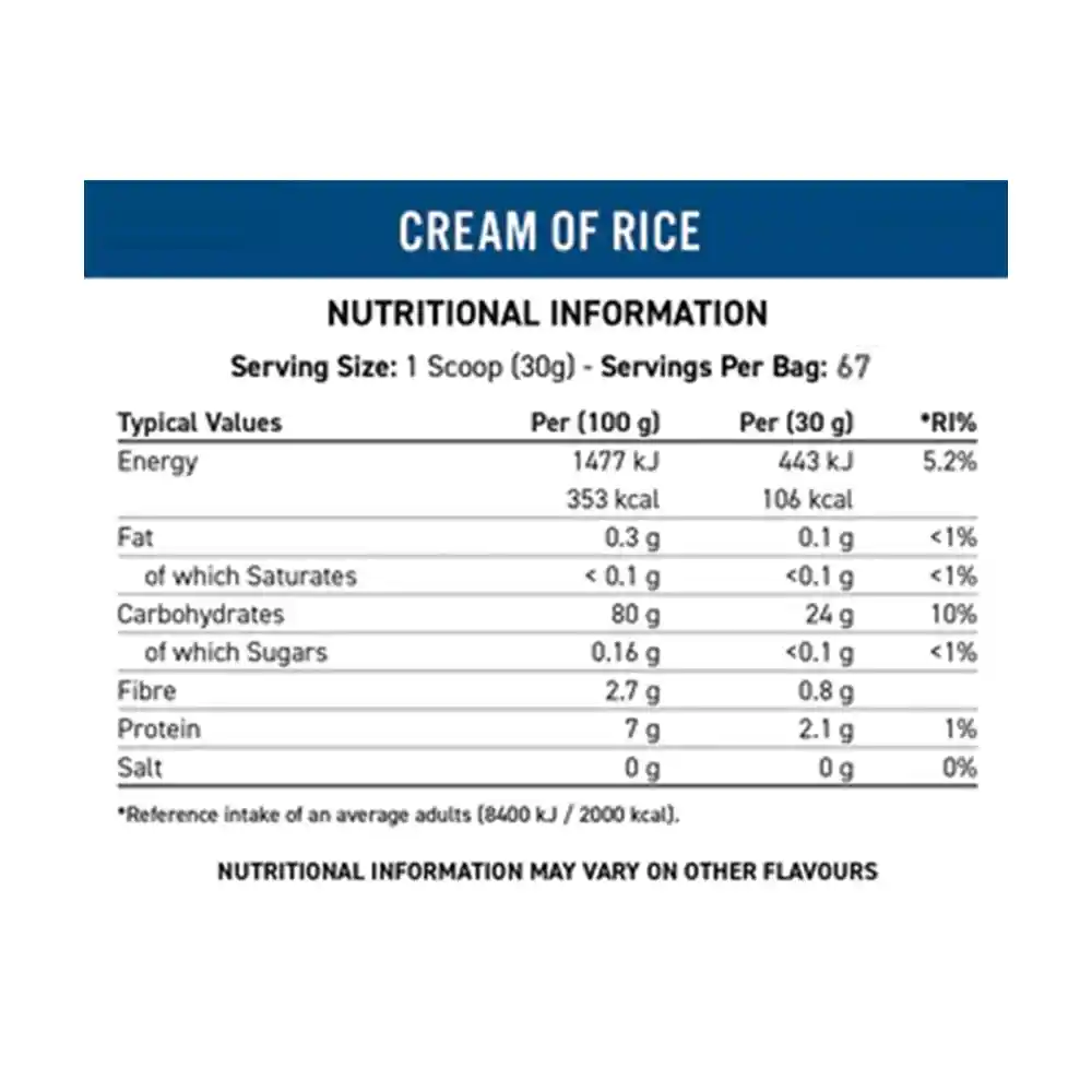 Applied Nutrition Cream of Rice is a pure and simple fuel source, providing only the finest white rice flour.