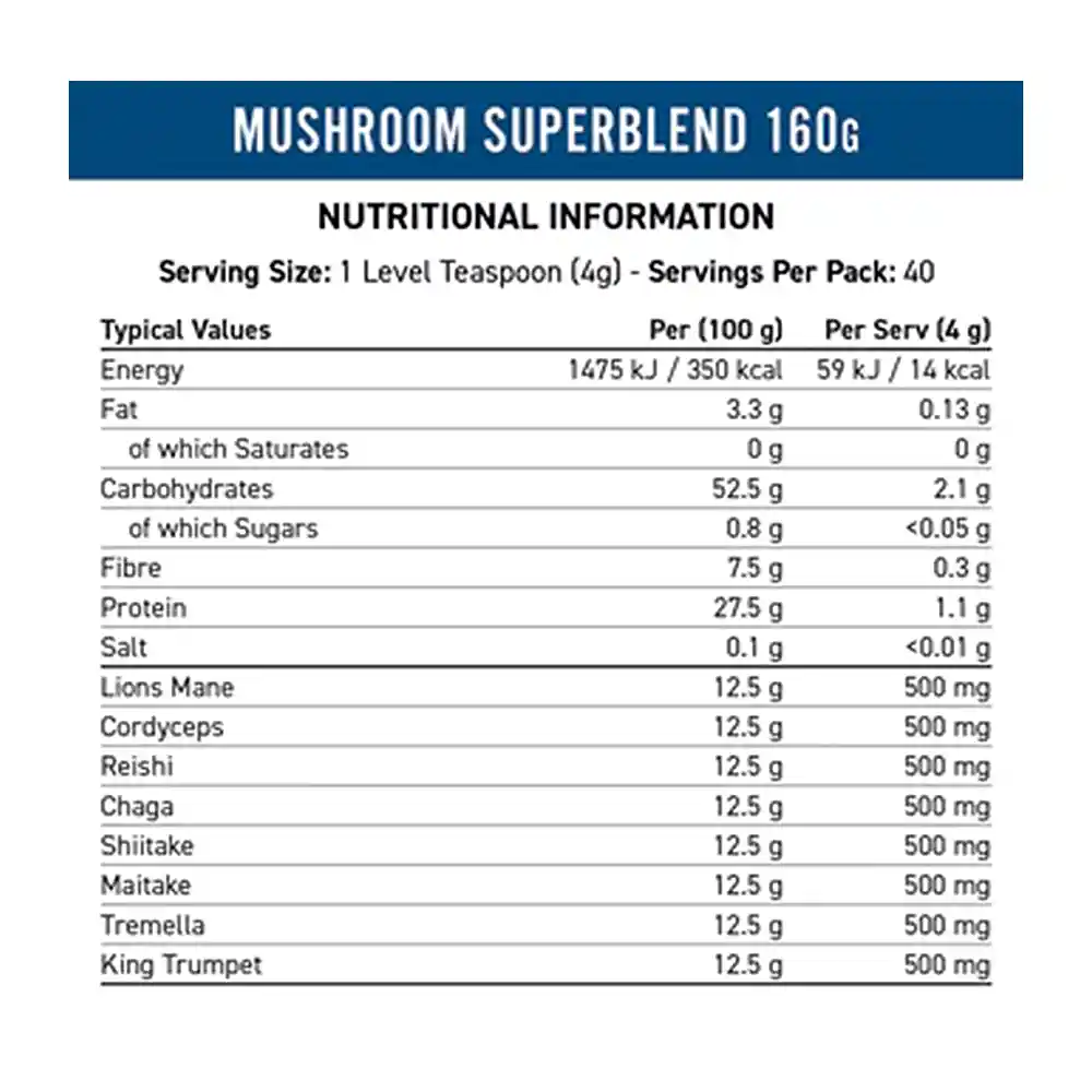 Applied Nutrition Mushroom Superblend combines potent mushrooms like Lion’s Mane, Cordyceps, and Reishi with other powerful varieties like Chaga and Shiitake.