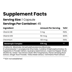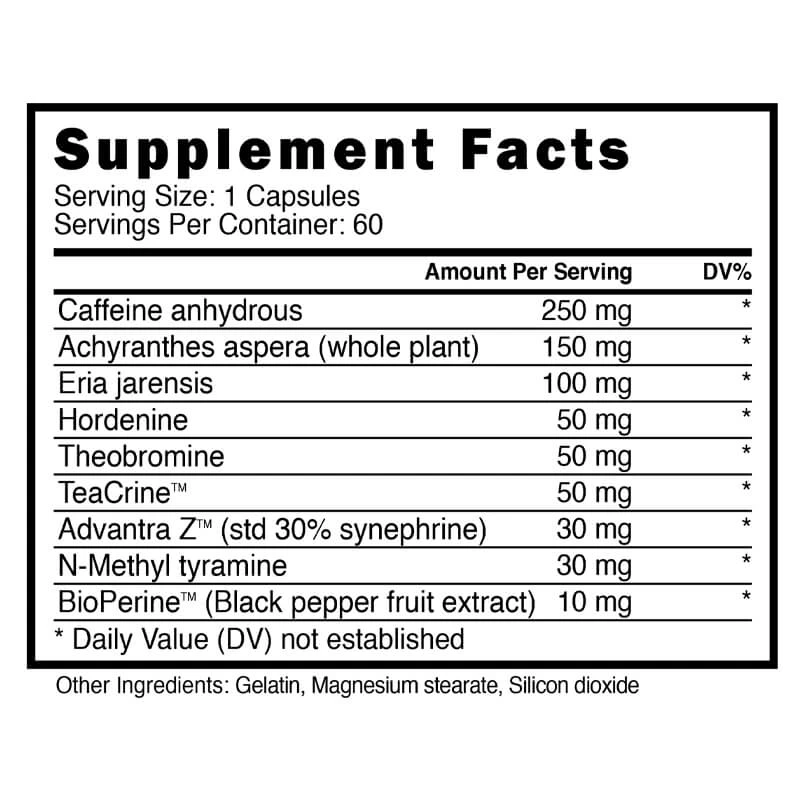 Harnesses the power of Caffeine Anhydrous, Eria Jarensis, and Advantra Z to ignite metabolism and amplify calorie burning. Elevate your weight loss journey with this dynamic blend designed for maximum fat-burning results.