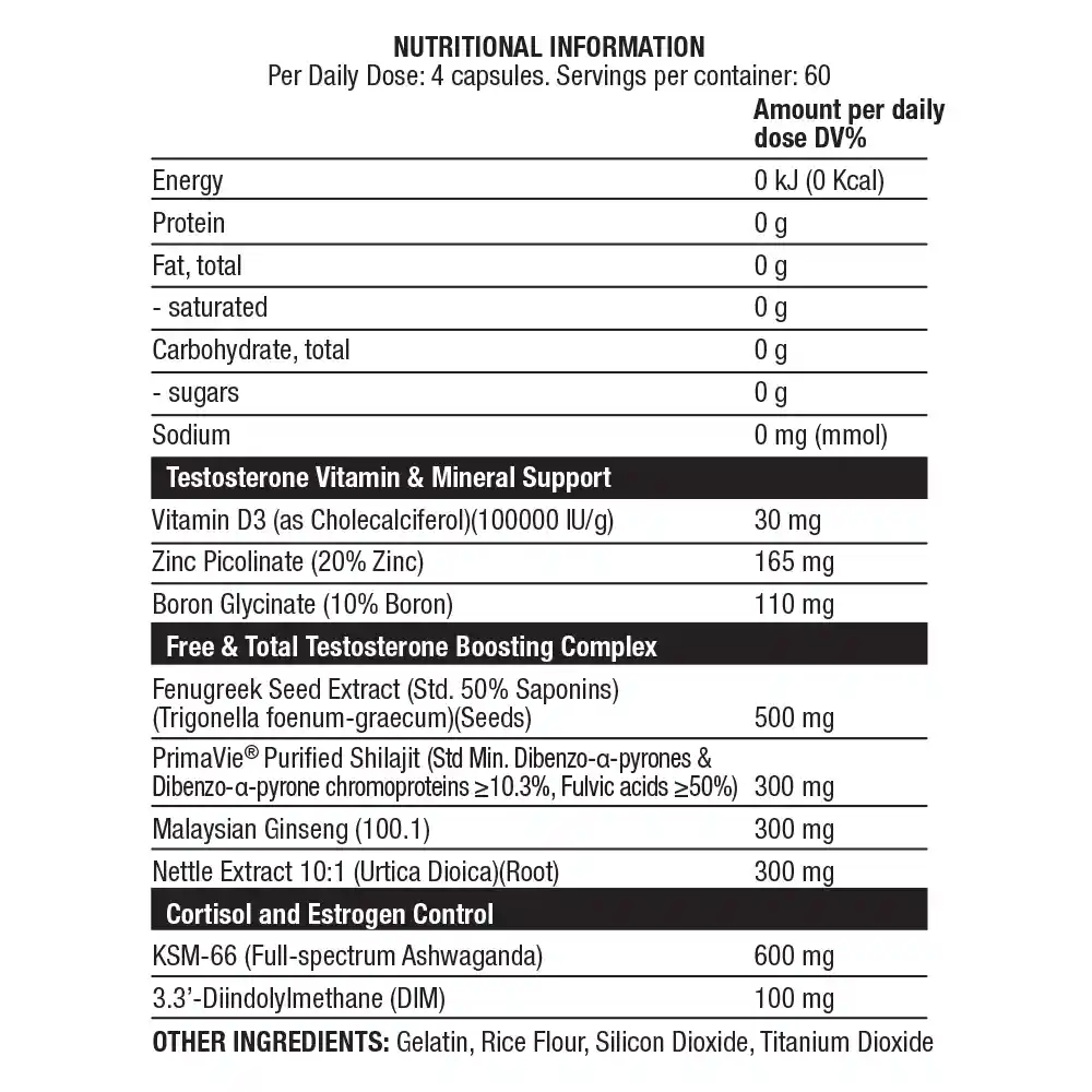 Elevate your testosterone levels naturally, supporting strength, vitality, and overall performance. Experience the alpha edge in your workouts and daily life.