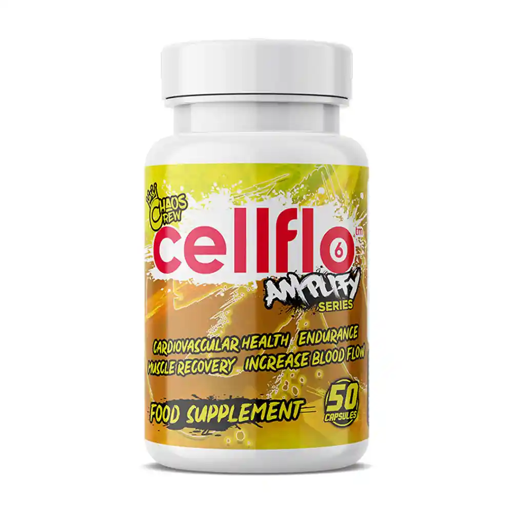 Chaos Crew Cellflo6, featuring Green Tea Leaf Extract, fuels your fitness journey by supporting optimal blood flow and nutrient delivery.
