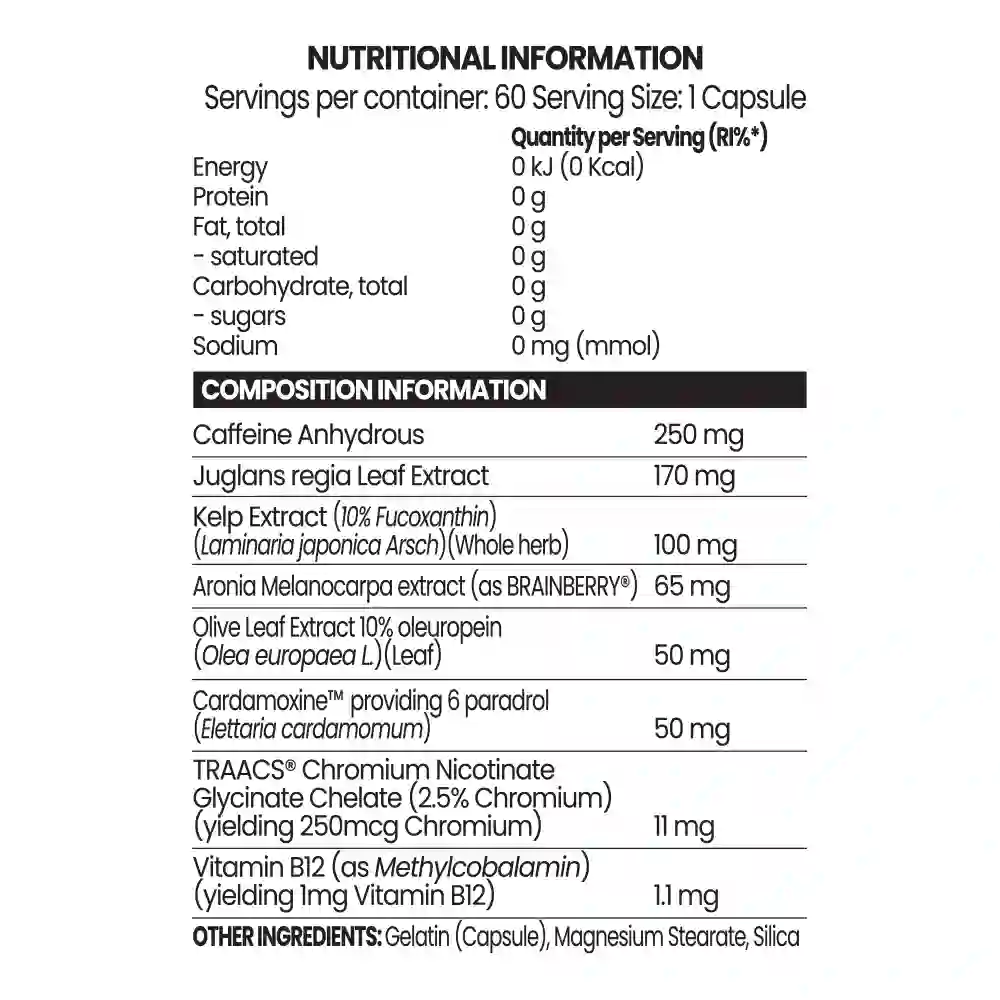 Chaos Crew Cutz Fat Burner combines potent ingredients like Caffeine, Juglans Regia, and Olive Leaf Extract to ignite your metabolism and fuel fat loss.