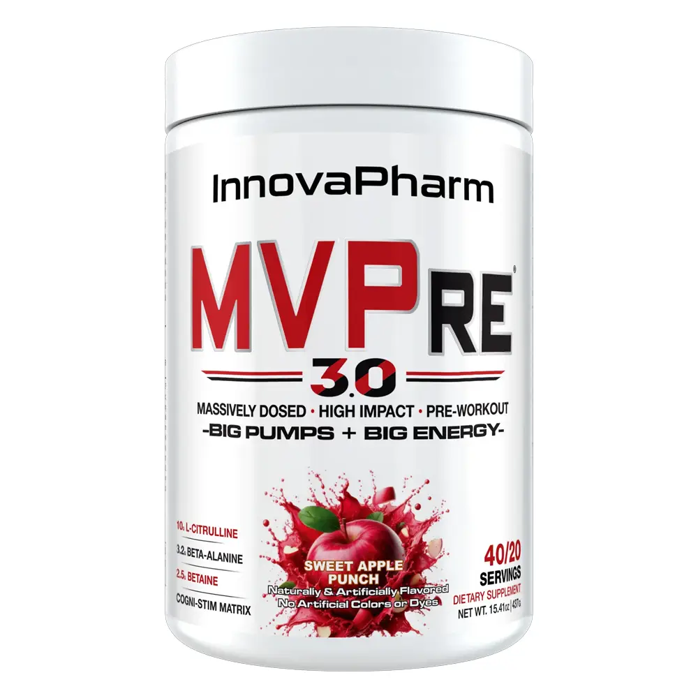 Experience unparalleled focus and explosive energy with InnovaPharm MVPre 3.0, a premium pre-workout blend designed to enhance performance and mental clarity.
