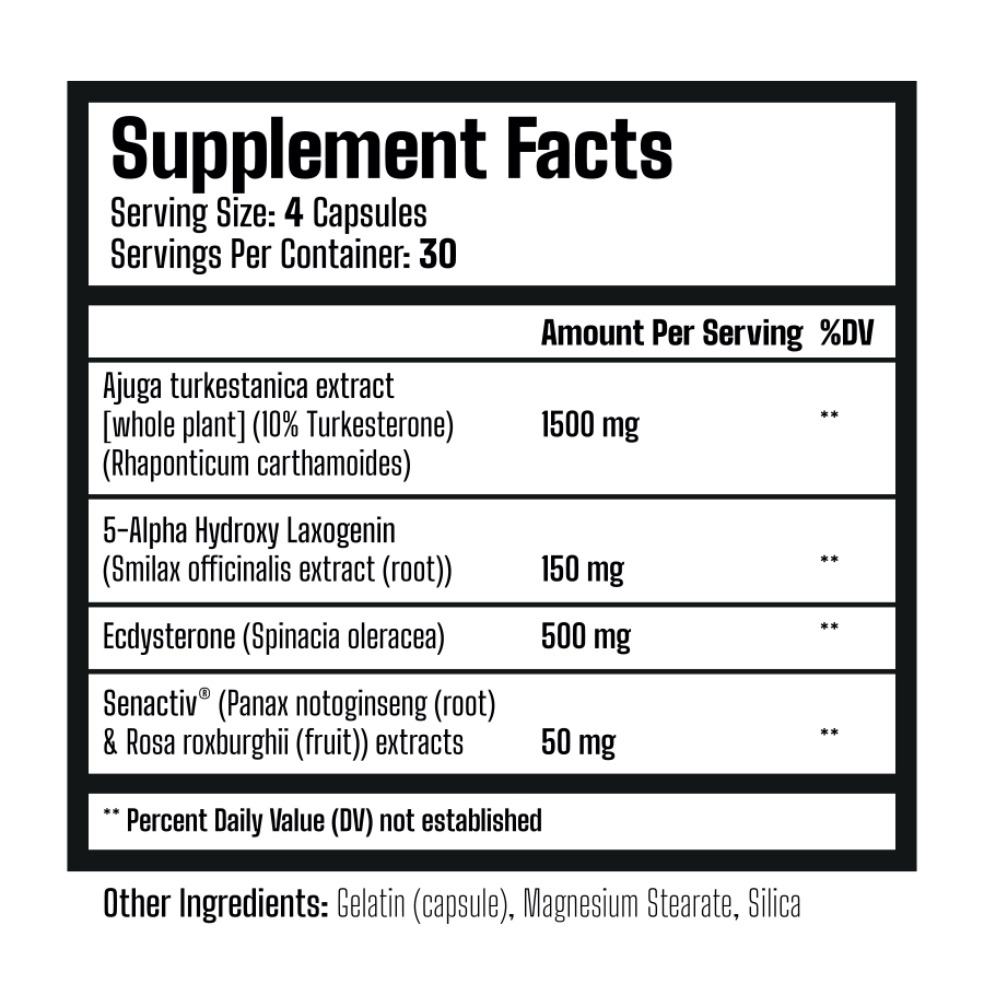 This powerful, all-natural supplement features Ajuga Turkestanica Extract, 5-Alpha Hydroxy Laxogenin, Ecdysterone, and Senactiv® to support muscle growth and recovery.