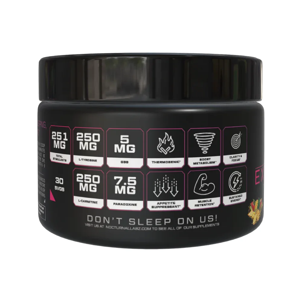Boost energy, fat burning, and focus with Nocturnal Labz Exothermic Thermogenic Pre-Workout. A potent blend of thermogenics, energy enhancers, and cognitive support for maximum performance.