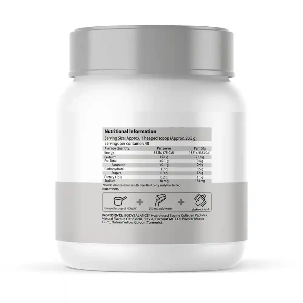 ATP Science Noway Juicy Collagen Protein delivers BODYBALANCE® Hydrolysed Bovine Collagen Peptides with a burst of natural flavours.