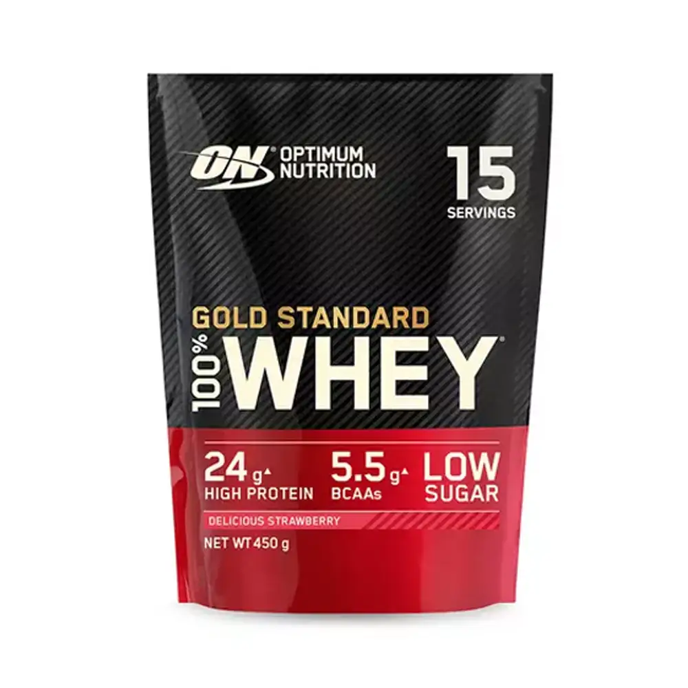 Optimum Nutrition Gold Standard Whey (450g) delivers 15 servings of premium whey protein blend for muscle recovery and growth. Perfect for daily use and fitness goals.