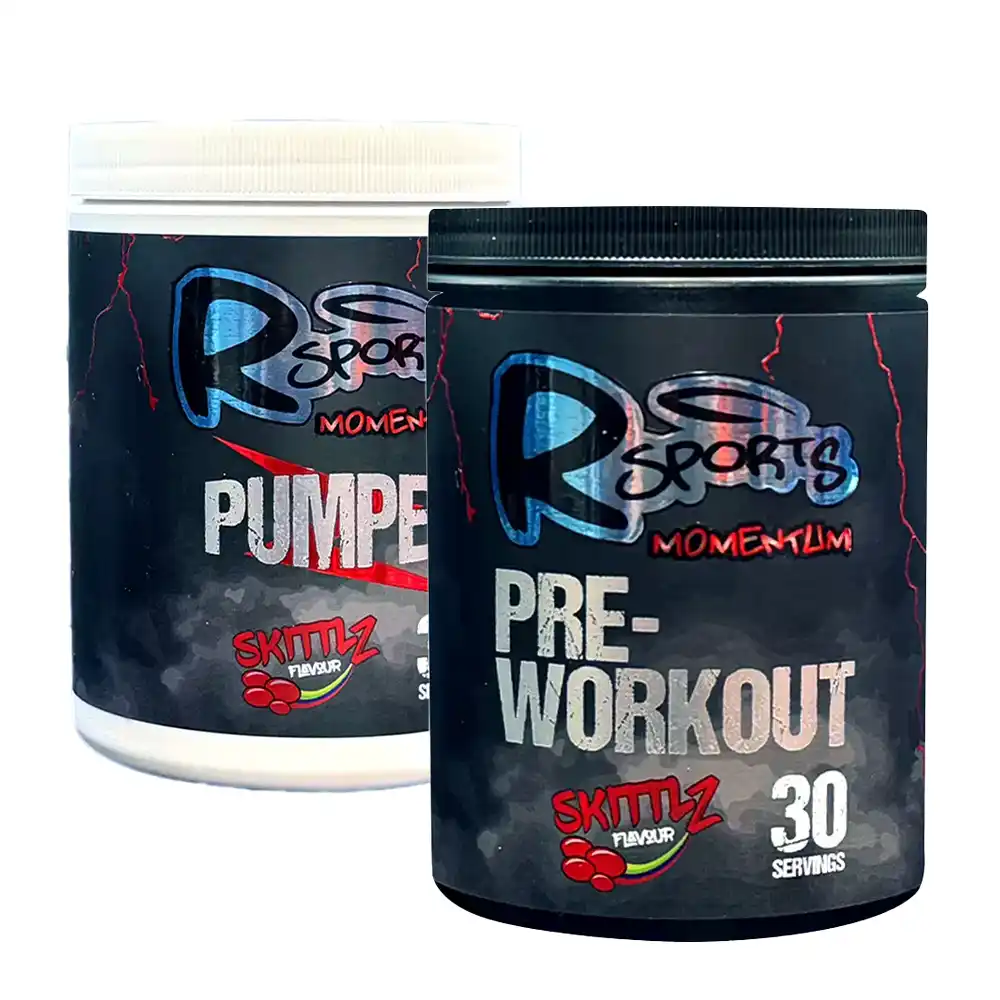 Power up your workouts with the Rsports Momentum Pre-Workout Bundle, combining the energy-boosting Momentum Pre-Workout and the pump-enhancing Momentum Pumped. Together, they deliver unmatched focus, endurance, and muscle fullness for your training sessions.