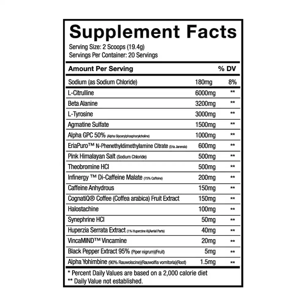 Packed with potent ingredients like Citrulline Malate, Beta Alanine, and Caffeine, it delivers explosive energy, focus, and endurance for an unparalleled training experience.